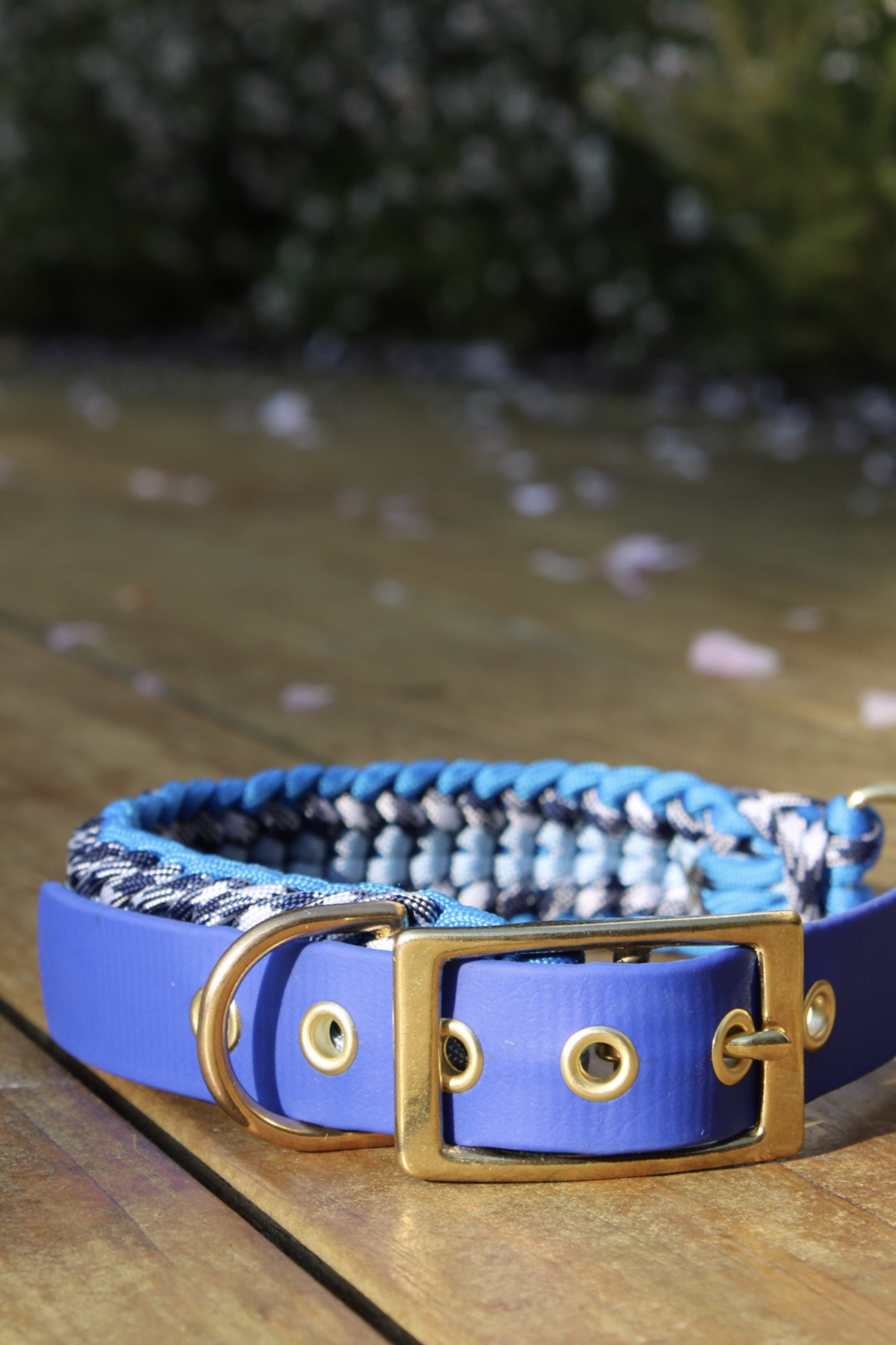 Nous avons choisi de travailler avec des matières de qualité, reconnues pour leur résistance, leur fiabilité et leur facilité d’entretien. Le biothane est apprécié pour sa solidité, sa souplesse, son imperméabilité et son entretien très simple. La paracorde tressée, quant à elle, apporte à la fois robustesse, confort et caractère, tout en permettant des associations de couleurs uniques. Pour les finitions, nous proposons une bouclerie au choix en laiton ou en acier inoxydable, afin d’allier esthétique, qualité et durabilité selon vos préférences;