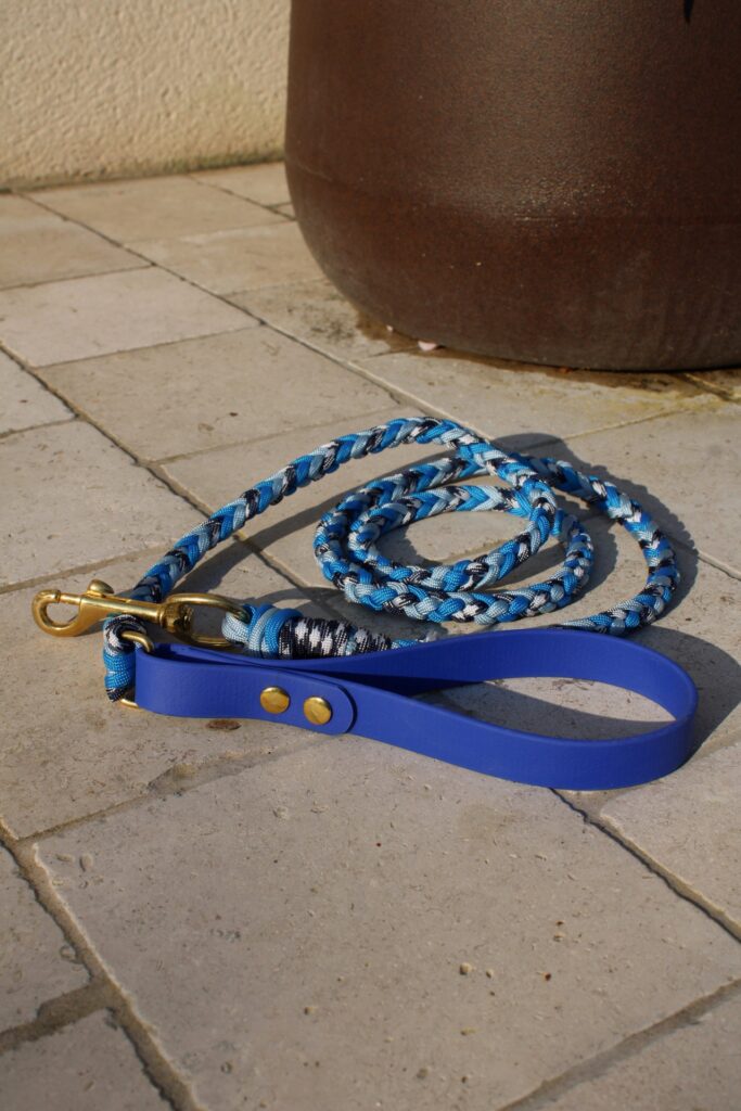 Chaque laisse est réalisée avec une paracorde tressée résistante et une poignée en biothane agréable en main, pratique et facile à entretenir. Cette combinaison permet de créer une laisse fiable, durable et esthétique, pensée pour un usage régulier.